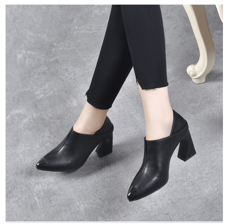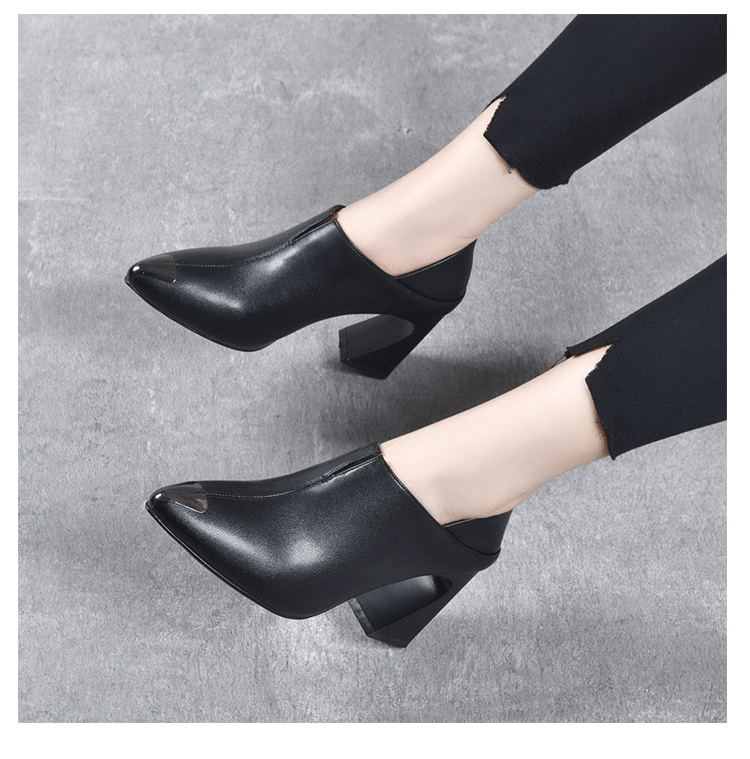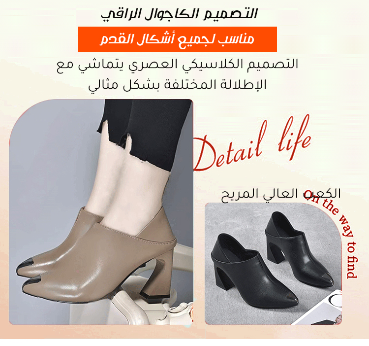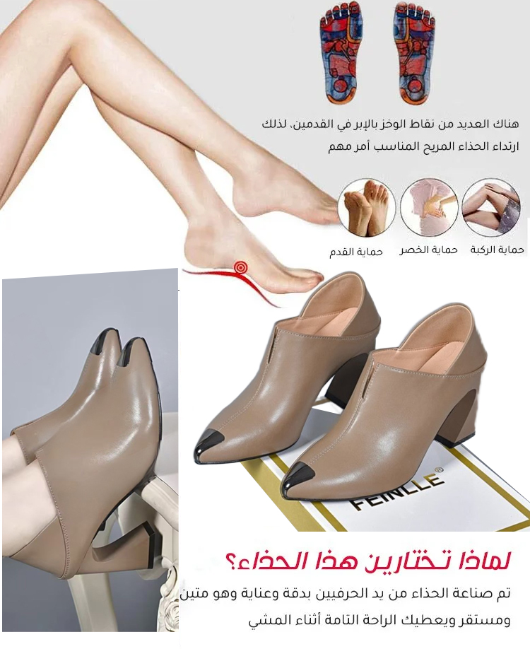 حذاء جلدي راقي بكعب عالي ومقدمة الحذاء المدببة مع طرائق الارتداء المتعددة